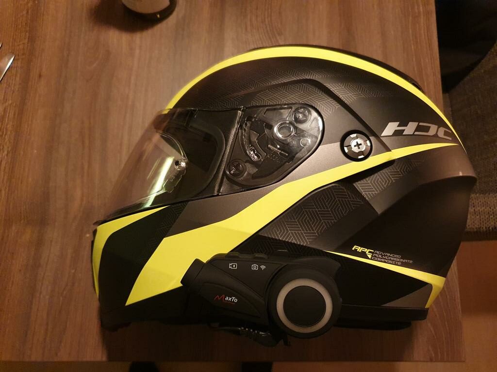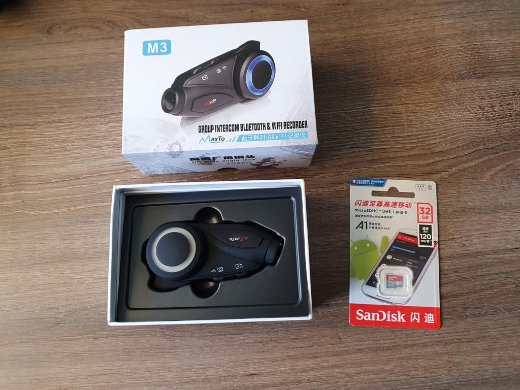 After an search on Aliexpress I found the Maxto M3 bluetooth video headset and the nice thing, it is a third of the price of the Sena 10c pro unit.