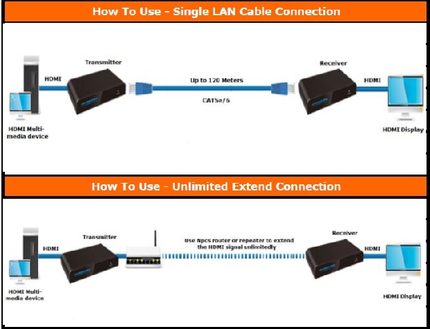 Met deze HDMI over LAN extender, kun je het HDMI signaal over een grote afstand versturen.