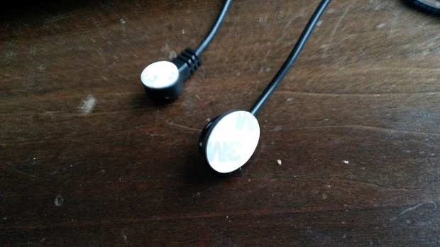 De kabels van de IR zender en ontvanger zijn nogal stug, maar door de 3M plakkers, blijven ze perfect op hun plaats: