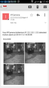Ook kunnen de afbeeldingen van de bewegingsdetectie verstuurd worden via e-mail. Bij het gebruik van Gmail levert dit een probleem op: