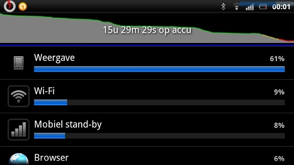 Bij normaal gebruik van de telefoon houdt hij het 1 tot 2 dagen uit. Als ik er de hele dag mee speel (Wi-Fi, GPS, films kijken, enz) moet ik hem 1,5 keer per dag laden. Ik vind dat matig tot redelijk.