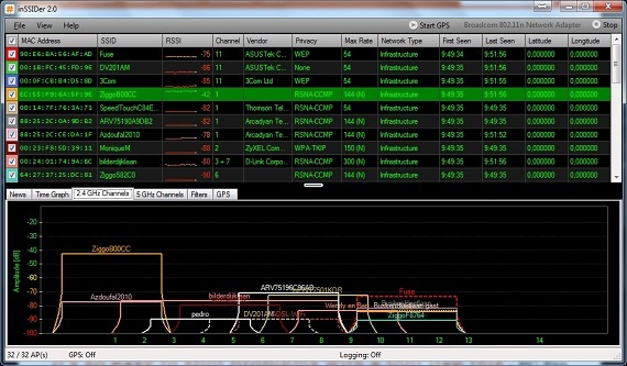 Deze afbeelding geeft de Wi-Fi-ontvangst van de Acer weer: