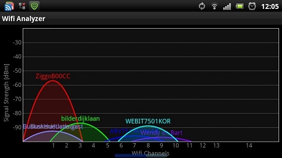 Deze afbeelding geeft de Wi-Fi-ontvangst van de Sony Ericsson (op dezelfde plaats als de Acer) weer: